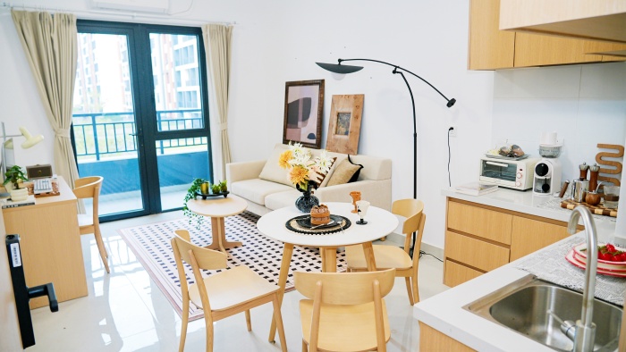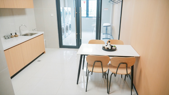 项目公区设置了宽敞明亮的共享洗衣房和茶水间。在洗衣间内还规划了熨烫衣物的区域,方便住户集中处理日常家务。